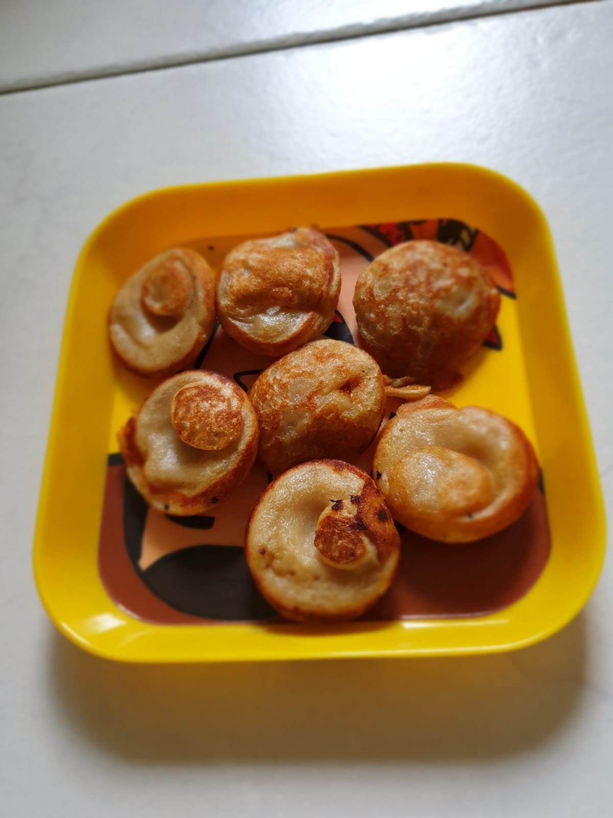 - Heat the Paniyaram pan and add ghee or oil and the batter in each hole