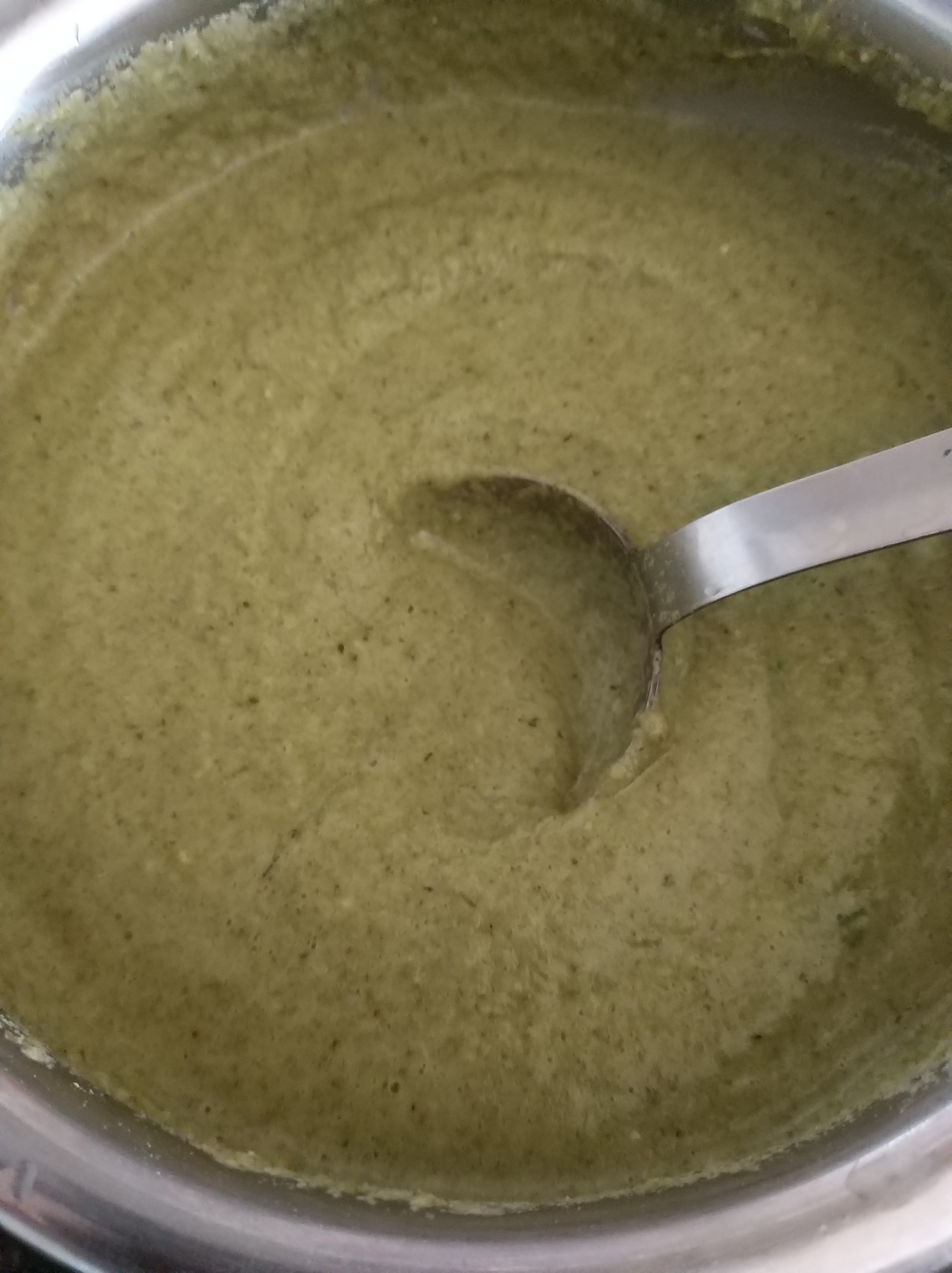 - Drain off all the water and grind it along with green chilli,ginger,coriander and hinge(optional)