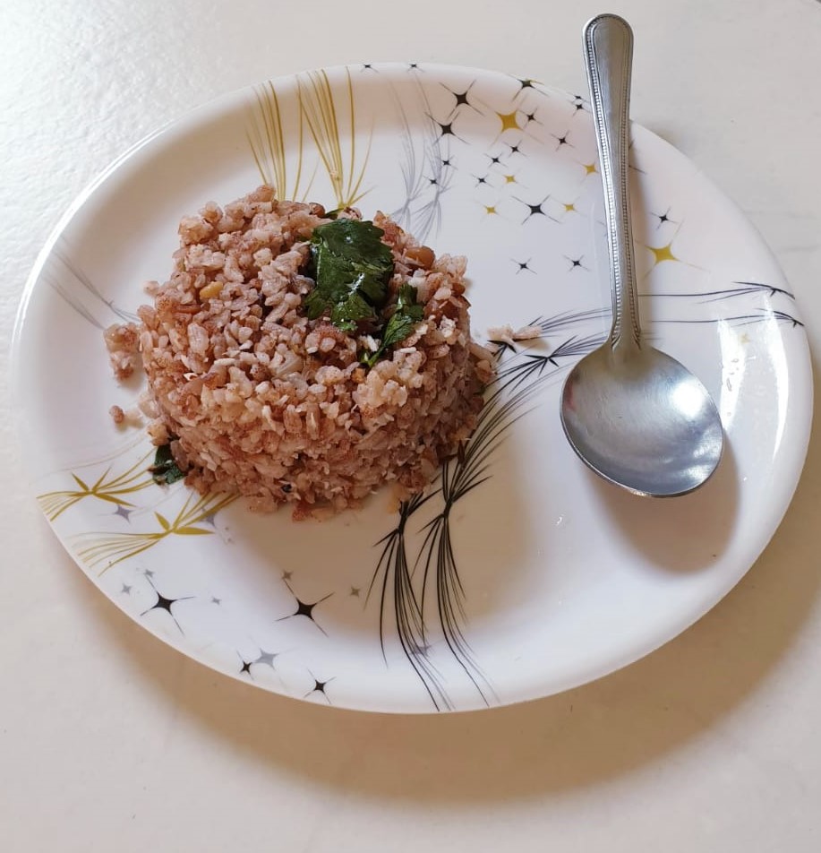 Poha is very easy to make instant gluten free breakfast recipes like poha upma, poha pongal , sweet poha and some other recipes. I followed my mom’s white poha upma recipe ( one of my favorite lunch box recipe during my schooldays) for this and replaced it with red poha. Here is the recipe.