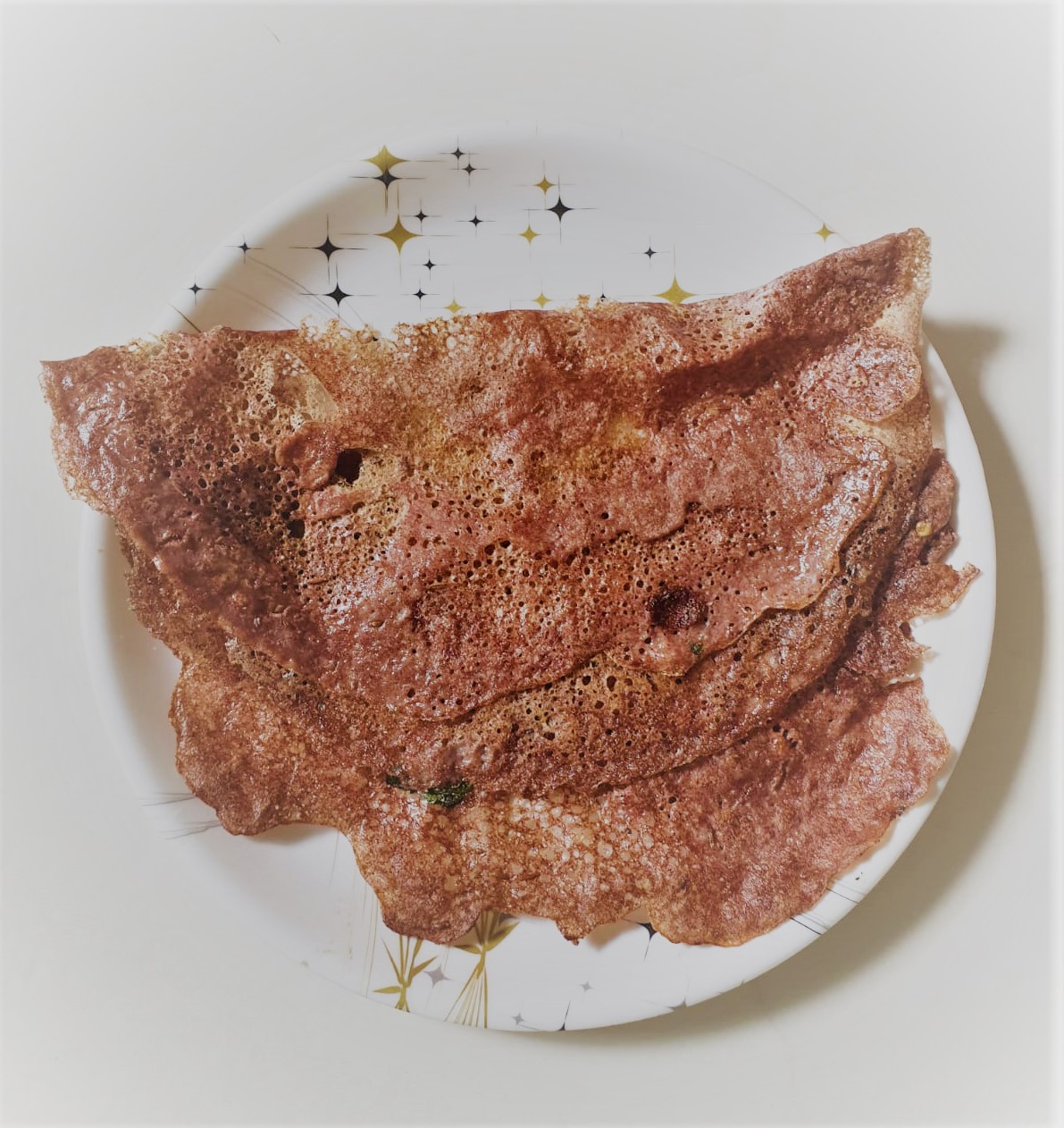 - Pour batter from a height, so it form a thin crepe and drizzle a tsp of oil