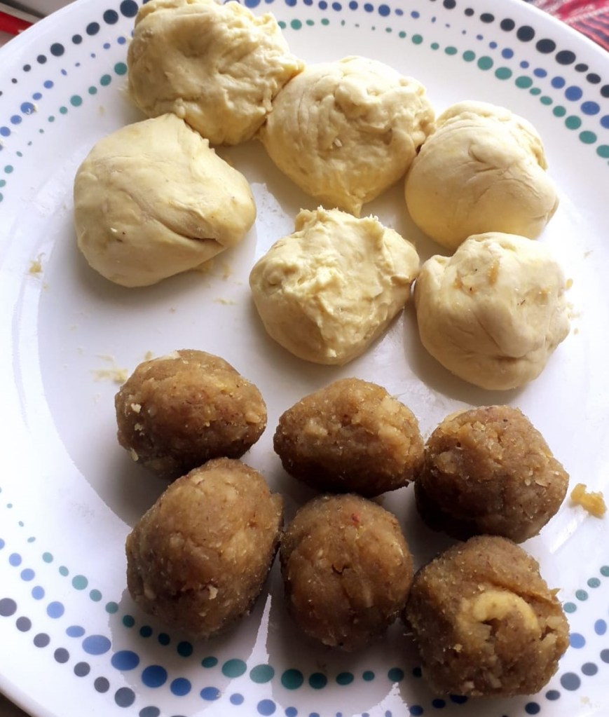 - Make small balls from the mixture and keep it(made 6 balls from the stuffing i made)
