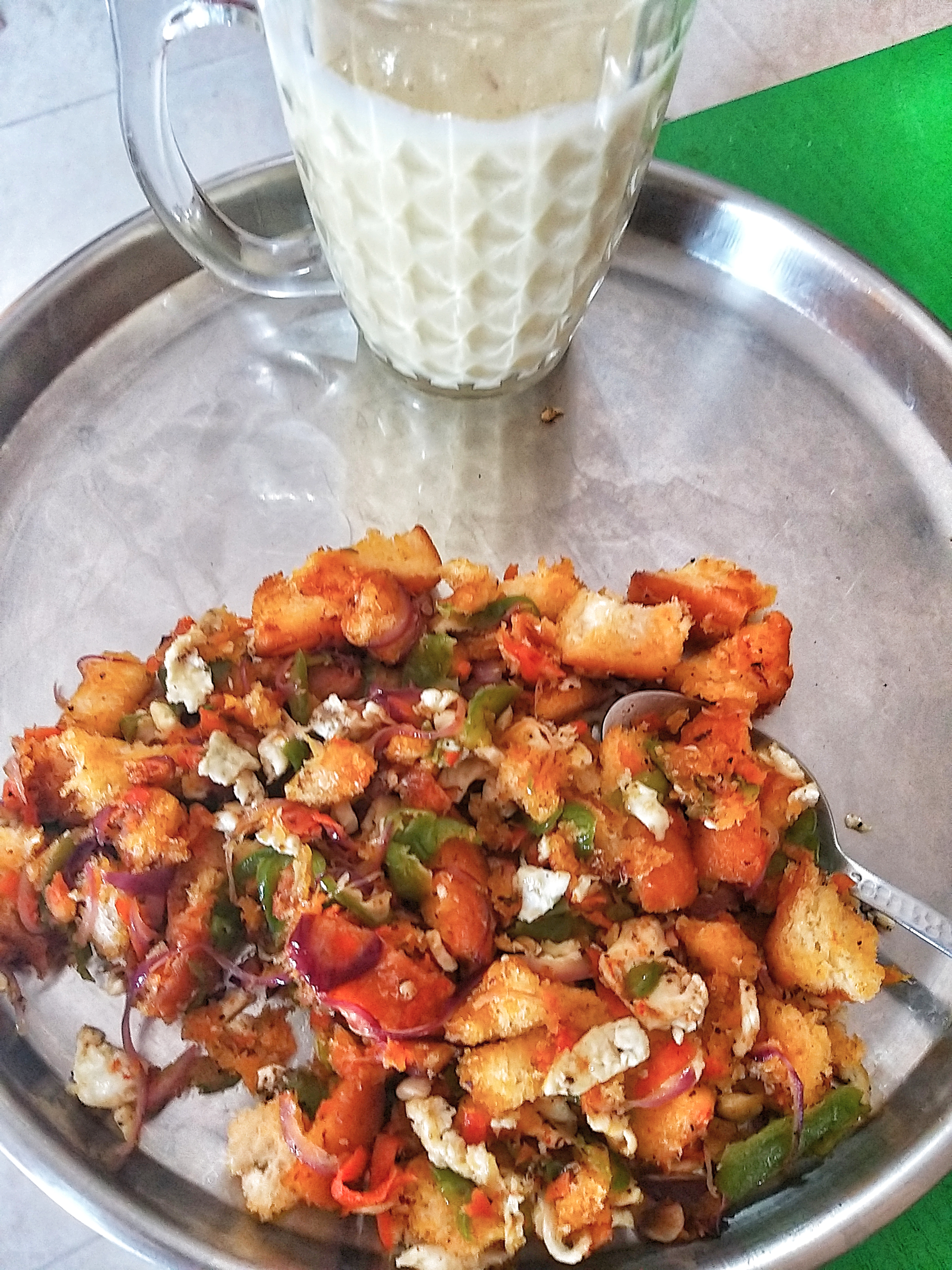 - Cut the bread,into small square shaped pieces.its best to include the crust of the bread too.
